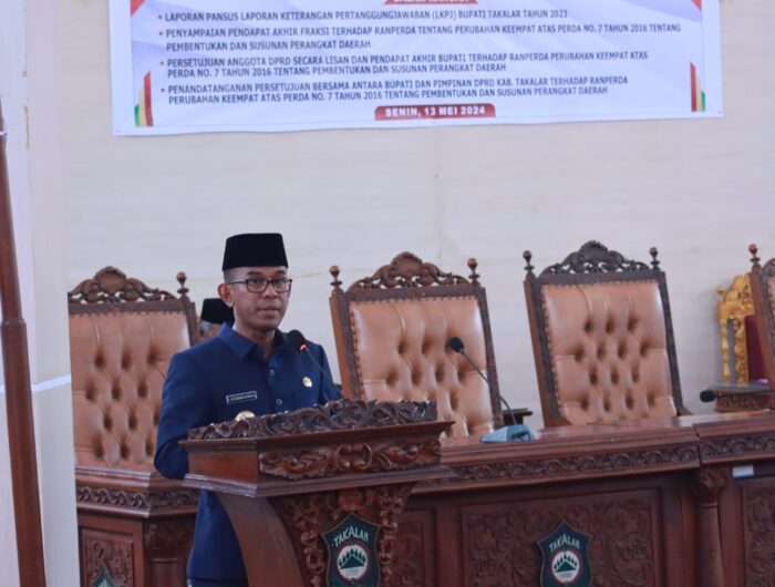 KABAR-SATU,TAKALAR — Pj Bupati Takalar, Setiawan Aswad, menghadiri rapat paripurna Dewan Perwakilan Rakyat Daerah (DPRD) Kabupaten Takalar, dalam rangka pembahasan Laporan Keterangan Pertanggungjawaban (LKPj) Bupati Takalar tahun 2023 serta peninjauan terhadap Rancangan Peraturan Daerah (Ranperda) Perubahan Keempat atas Perda No 7 Tahun 2016 tentang Pembentukan dan Susunan Perangkat Daerah.