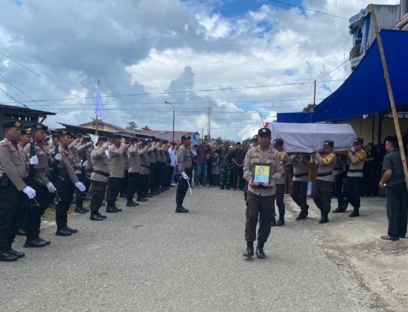 Dalam suasana yang sepi dan berduka, tangis histeris terdengar memecah keheningan ketika jenazah Anggota Polsek Marioriwawo tersebut akan di antar ke tempat peristirahatan terakhirnya.