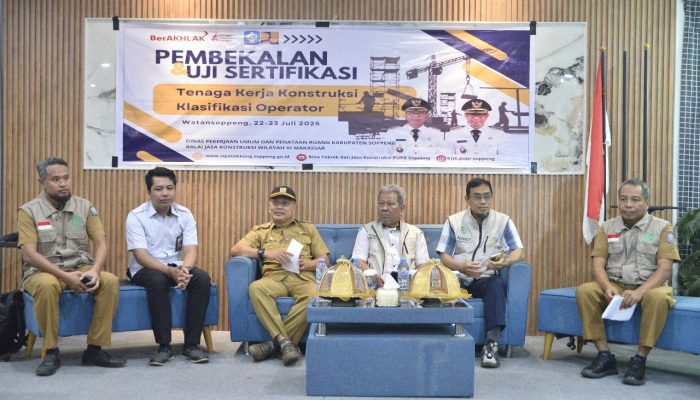 KABAR-SATU,SOPPENG – Sebanyak 70 peserta dari masyarakat konstruksi umum dan dua proyek strategis, termasuk jembatan Toddang Saloe Desa Kessing, mengikuti kegiatan pembekalan dan uji sertifikasi tenaga kerja konstruksi klasifikasi operator tahun 2025. Selasa (22/7/2025).