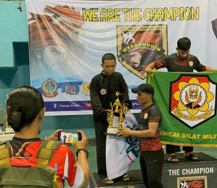 KABAR-SATU, MAKASSAR — Muh Raihan Al Al-Ghifari, atlet pencak silat kontingen IPSI Kabupaten Soppeng berhasil keluar sebagai Juara I kategori remaja putra kelas 71–75 kilogram Pool 1 pada ajang Kejuaraan Nasional Pencak Silat Hasanuddin Championship 2025. Kejuaraan tersebut digelar pada 26–28 Desember 2025 di GOR Sudiang, Makassar.